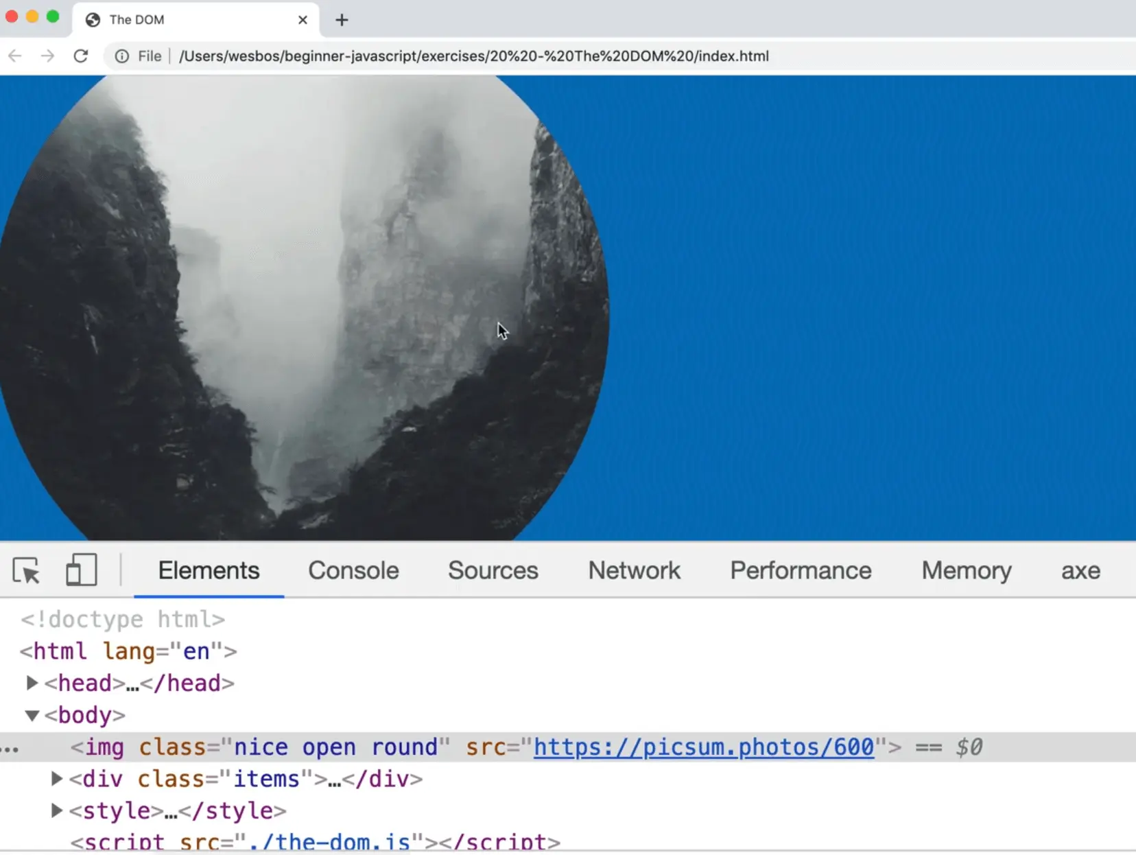 Let's demonstrate how to do that, starting by commenting out all the code within the-dom.js.