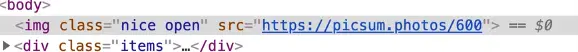Refresh the page, and inspect the image element. You will see the image now has a class of open.