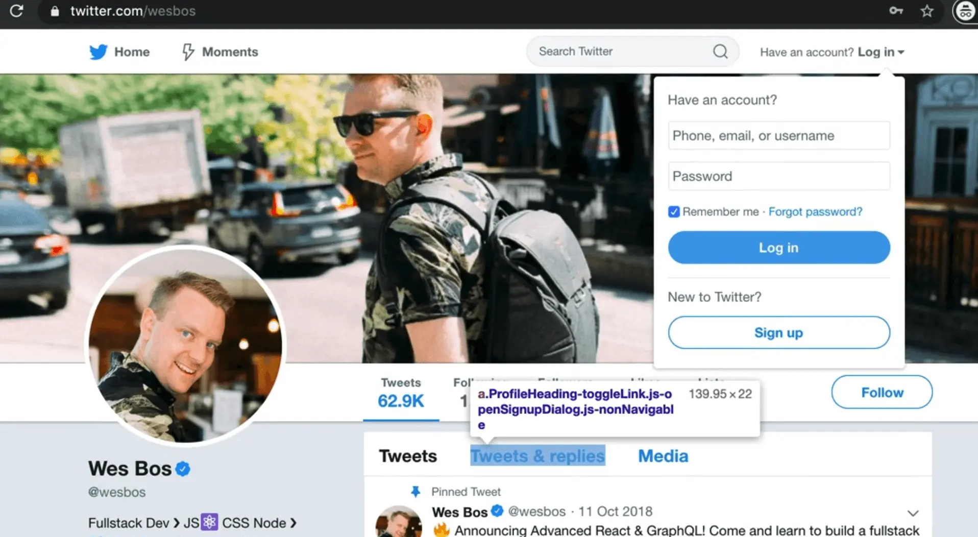 For example, on Twitter, if you try to click "tweets and replies" while not logged in, you will see a modal popup saying "You are not logged in".