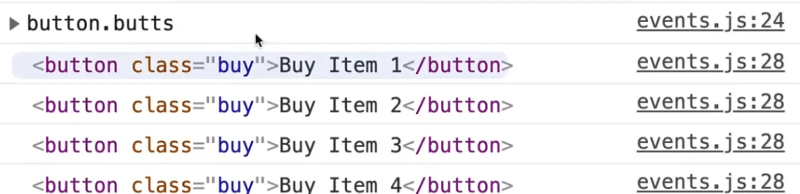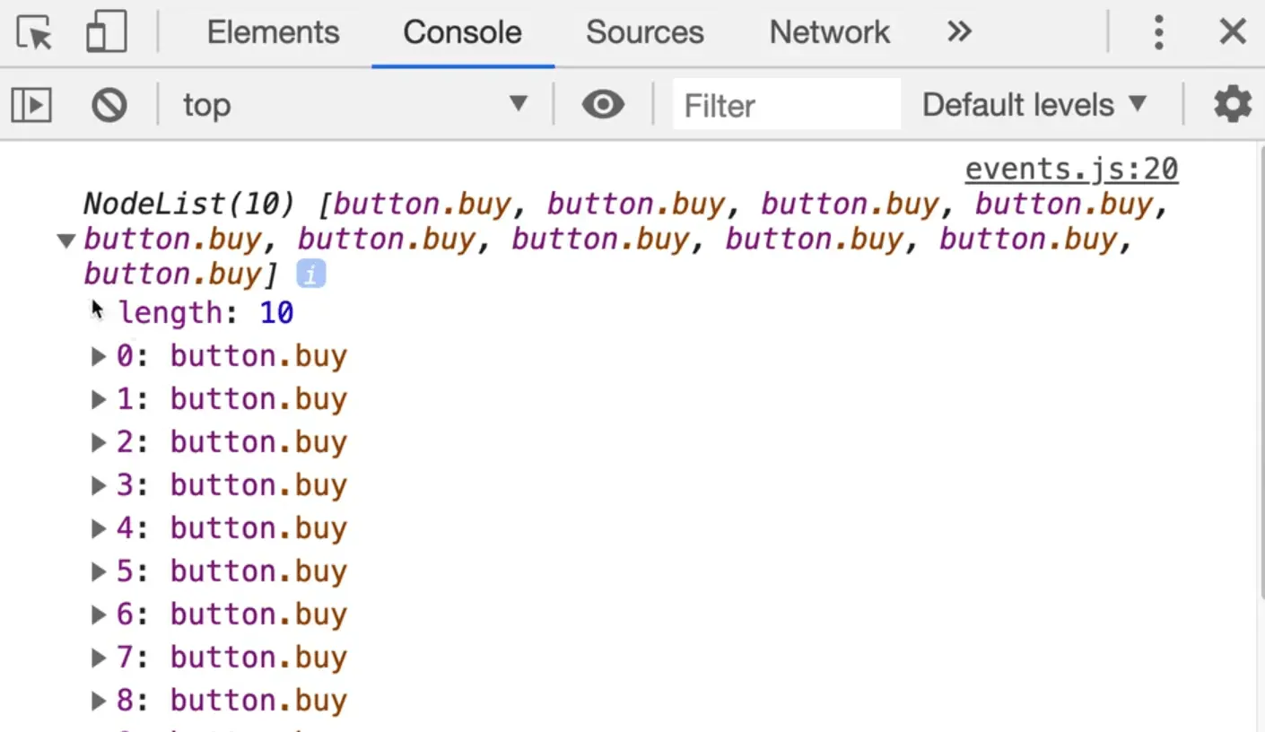 If you run that, you should see all the buy buttons logged in the console.