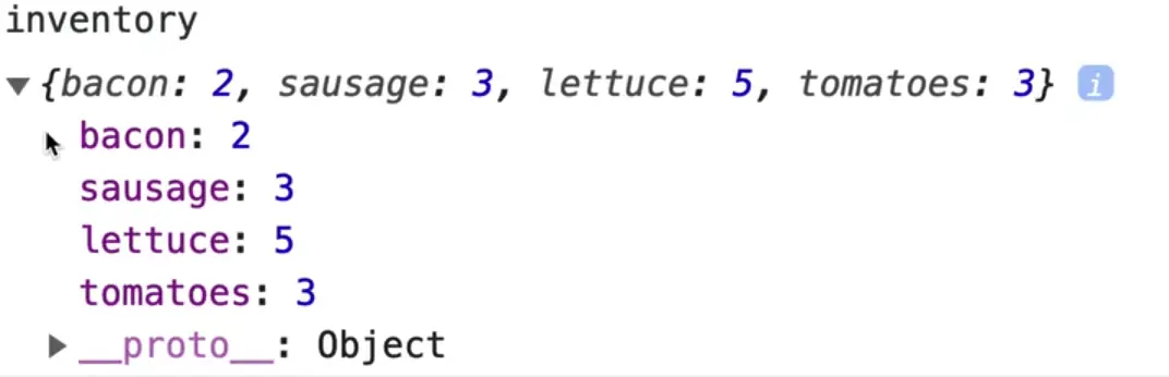 So we have these 2 objects, meatInventory and veggieInventory, both of which have 2 properties.