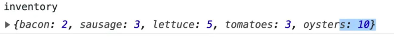 Now we have a new inventory property which you can see if you refresh the page, open the console and type in inventory.