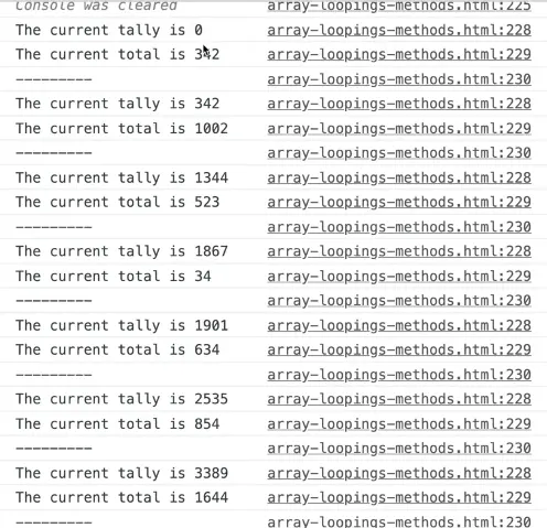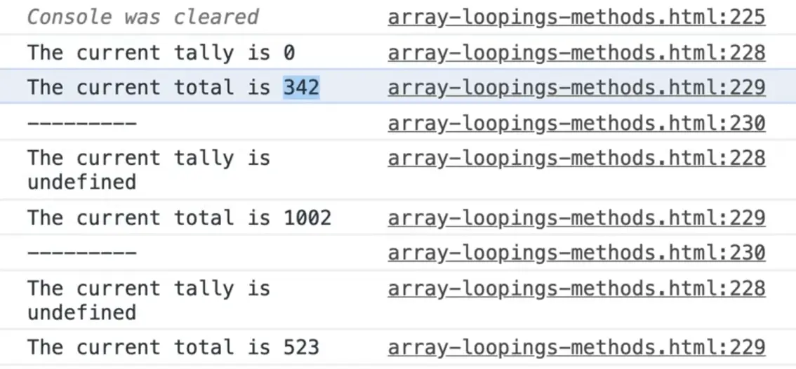 So as you can see, in the first loop the tally is 0 and then in the rest it is undefined.