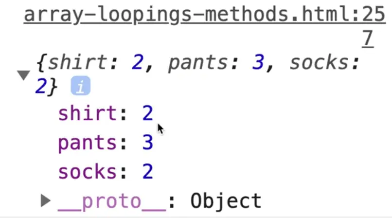 We are checking if totals.shirt exists, if it does, we increment it by 1, if it doesn't we create the property and set it to 1.