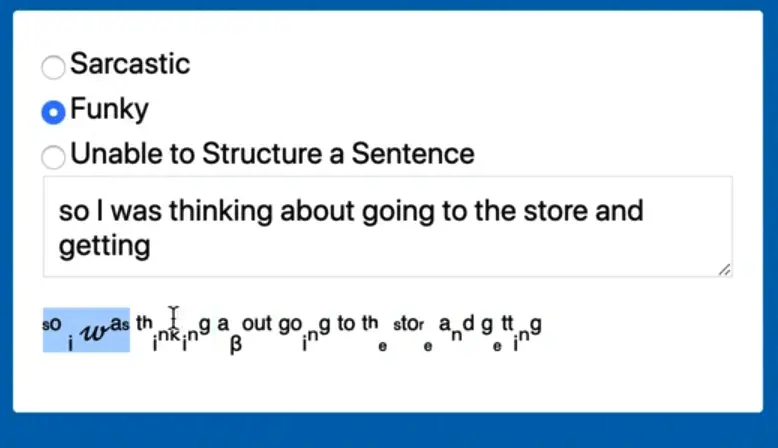 Now if you type in the textarea and select the sarcastic filter, you should see something like this 👇