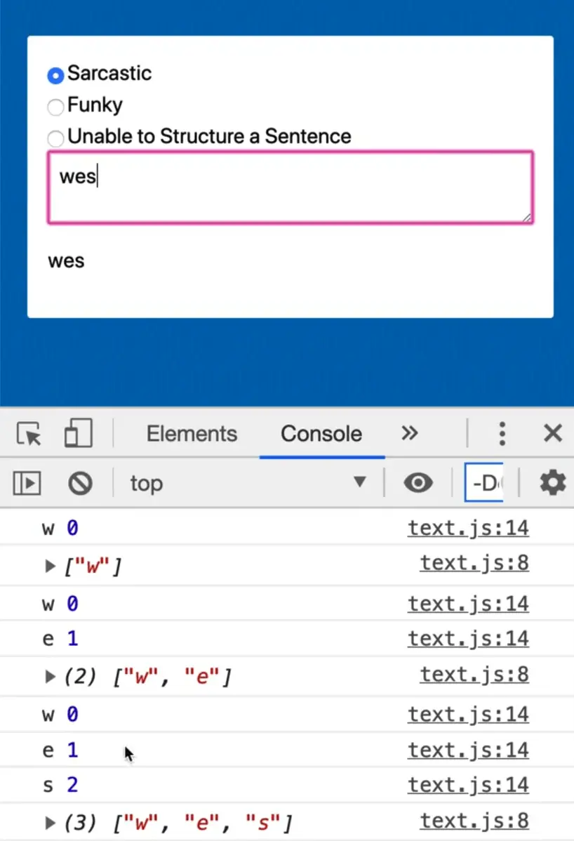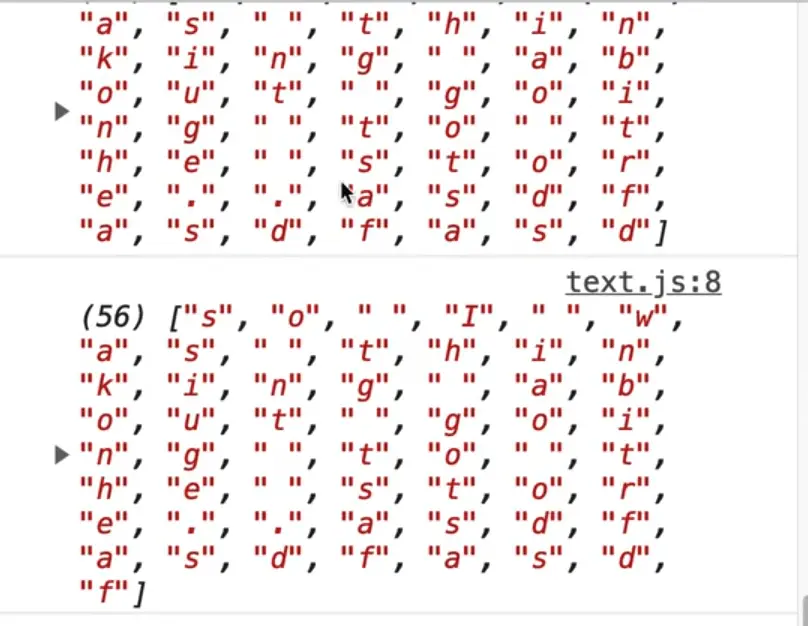 Now every time you type in the textarea, you should get an array of every single letter that the person has in there.