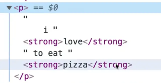 Add a paragraph at the top of the HTML page such as <p>I <strong>love</strong> to eat <strong>pizza</strong></p> and inspect it.