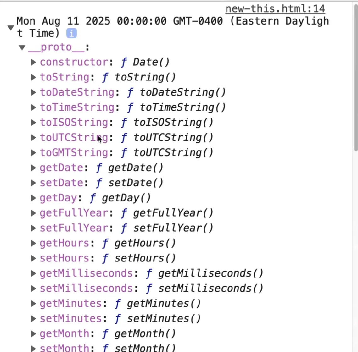 If we did console.dir(myDate); instead, you will see that we have our date and inside of it we have a prototype of tons of different methods.