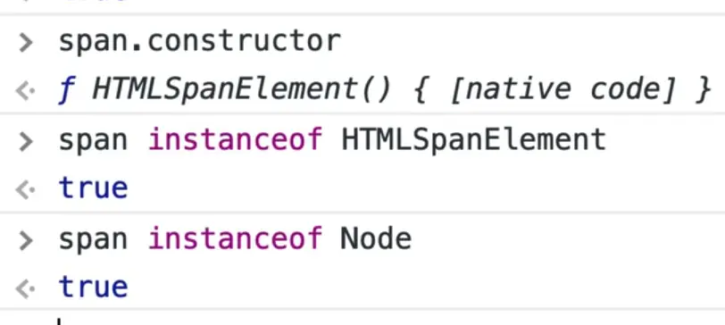 Same thing with our span. If we look at our constructor, we see that the thing that made the span was the HTMLSpanElement function.