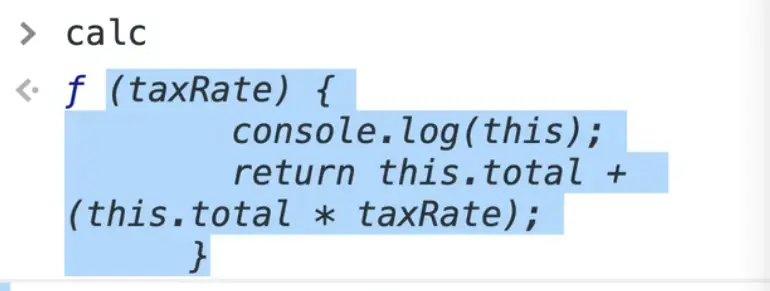 Instead of returning, like you see happens above when we call calc, if we just duplicate the line of code where we are declaring calc and modify it like below, let's see what is returned.