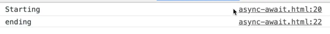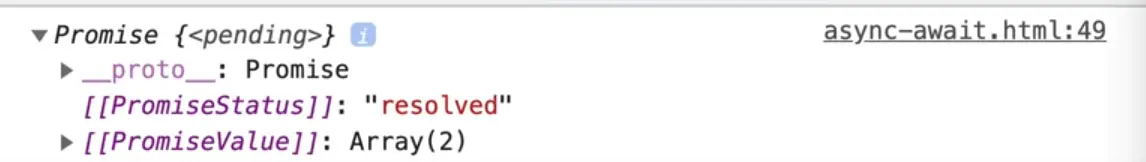 That is because we are running the function and storing it in a variable, which will store the promise in the variable. Note that we call it "await" instead of "wait" because it is asynchronously waiting. Meaning it won't actually pause all of JavaScript, it's not going to block the rest of the JavaScript from running.