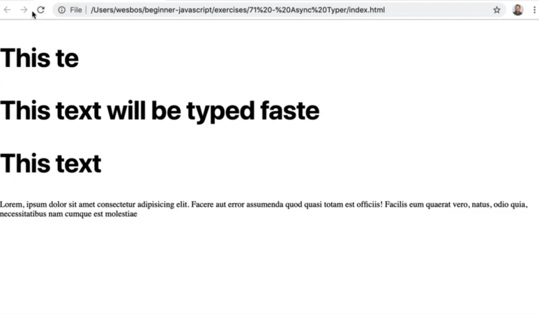 If we tried to set the text content of the element to el.textContent = soFar, when you refresh the page it happens so fast that you can barely see it.