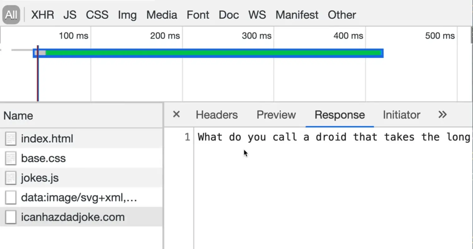 We will be doing another AJAX example in this video, but this time using a Dad Joke API.