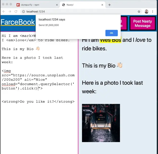 Sanitizing User Data with DOMPurify.