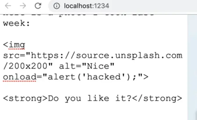 If you try adding an alert in the onload attribute of the image tag again, nothing will happen this time.