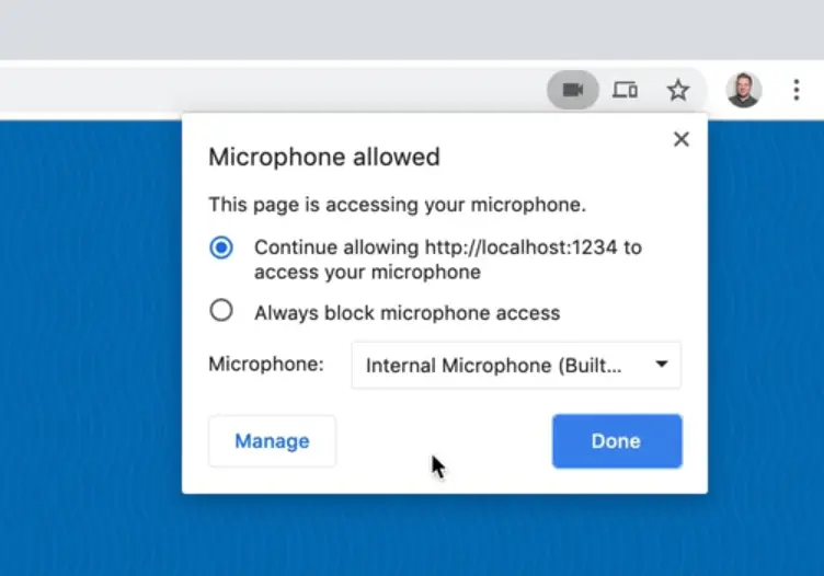 When the page refreshes after adding the import statement, you may be prompted to accept permissions to the microphone.