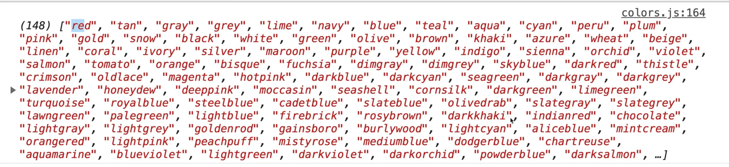 As you can see, now it works! That gives us a list of all the colors.